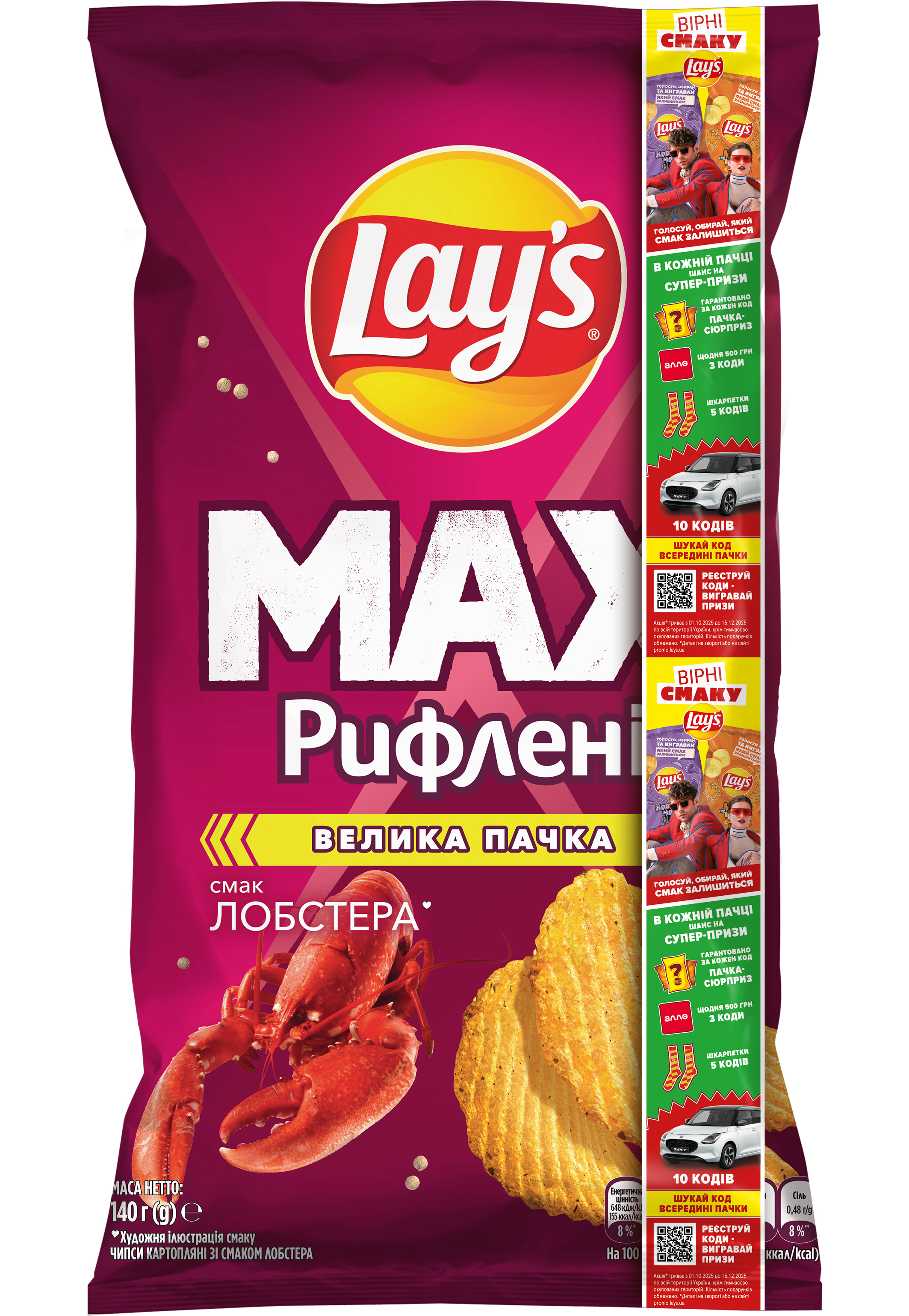 Lays MAX Ridged Лобстер 0.140кг 1-21 UA
