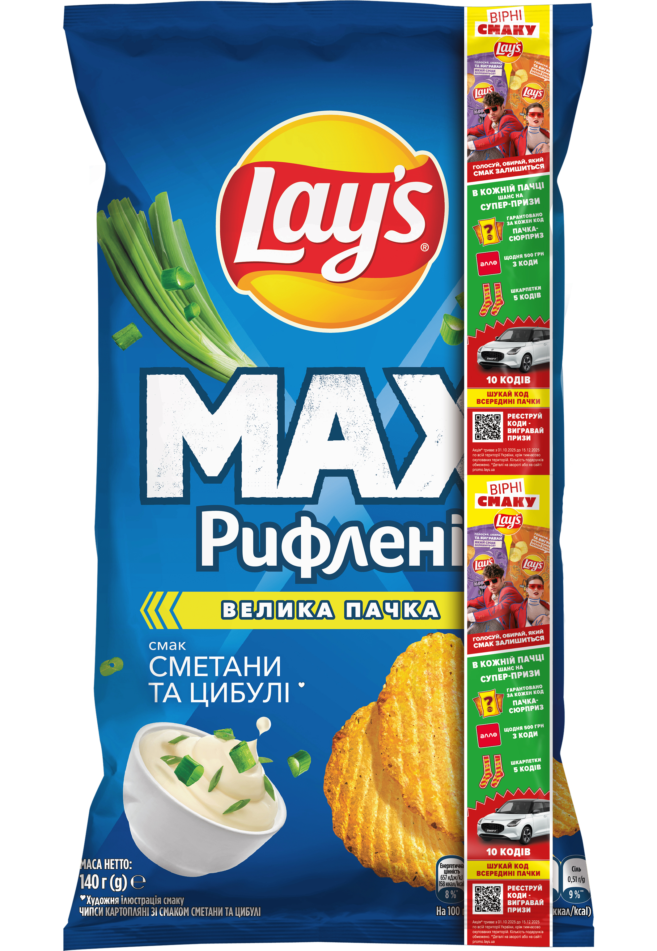 Lays MAX Ridged Сметана-Цибуля 0.140кг 1-21 UA