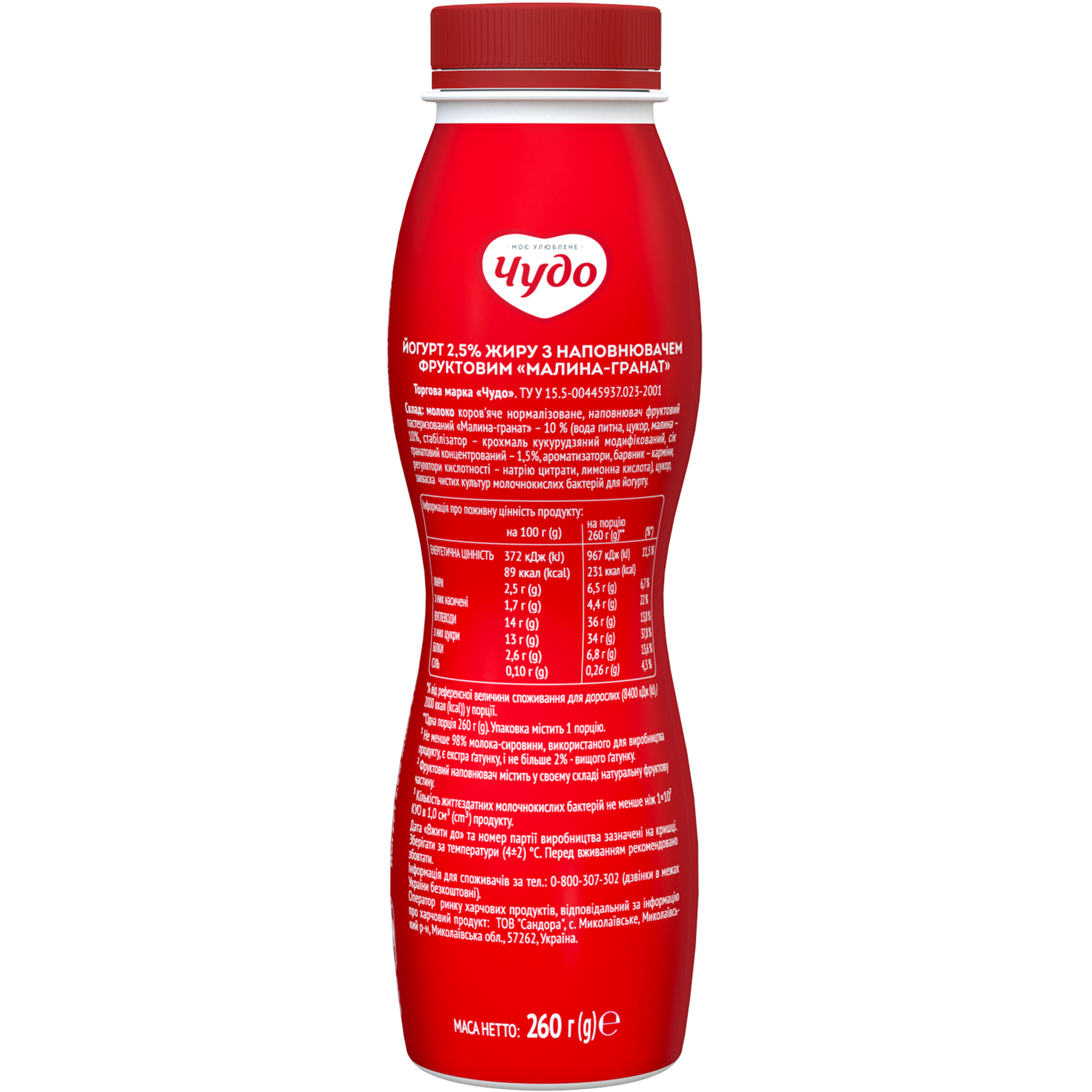 Чудо ЙП 2.5% Малина-Гранат 0.260кг ПЕТ