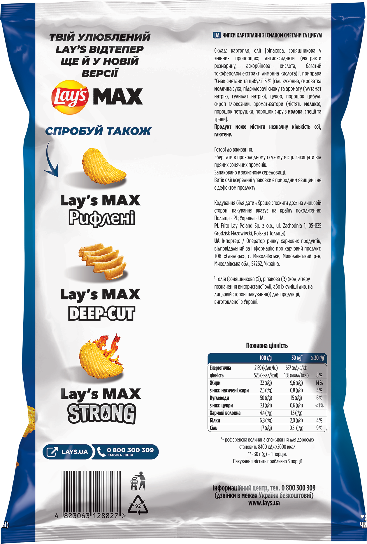 Lays MAX Ridged Сметана-Цибуля 0.120кг 1-21 UA