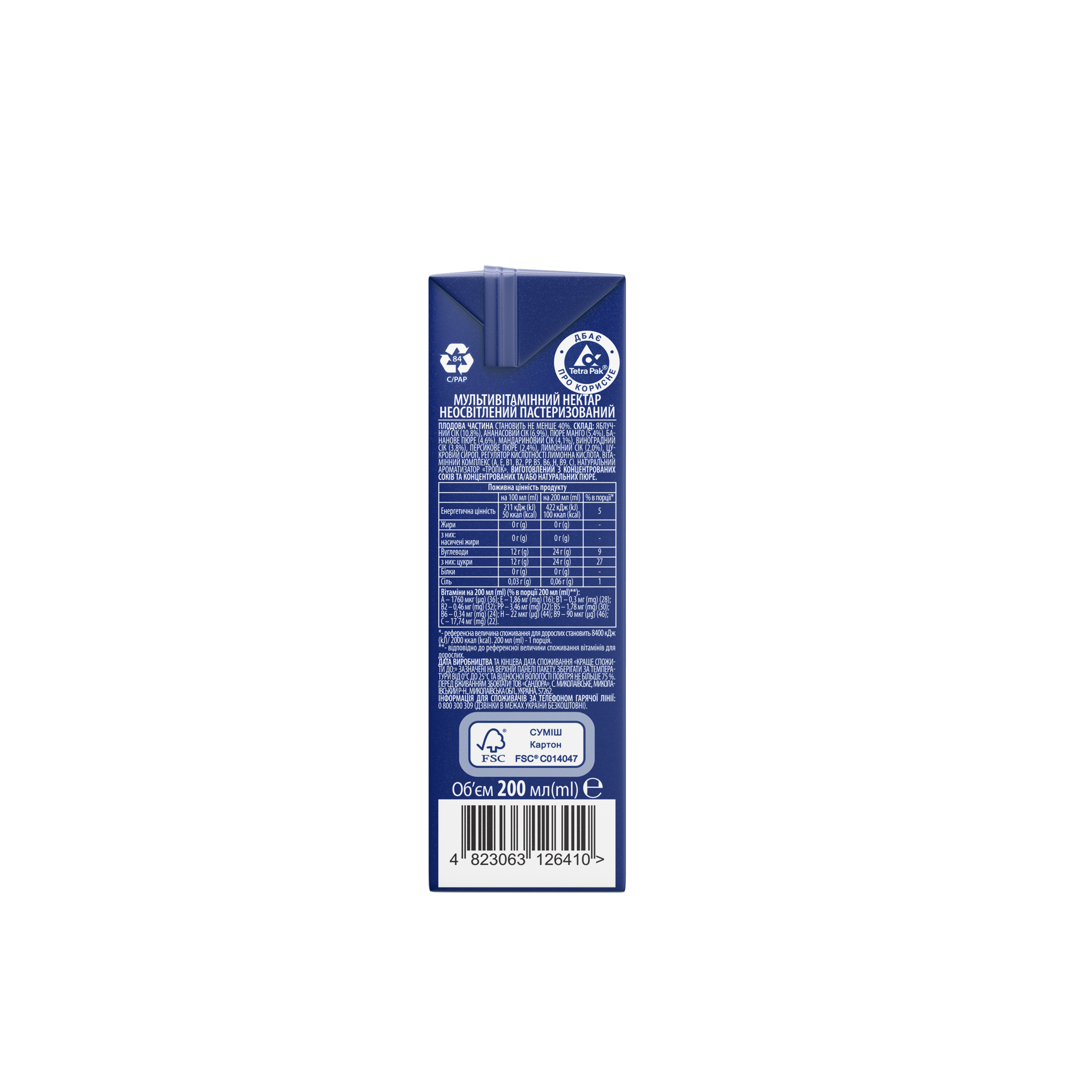 Multivitamin nectar unclarified sterilized, TM "Sandora" 0.2 L