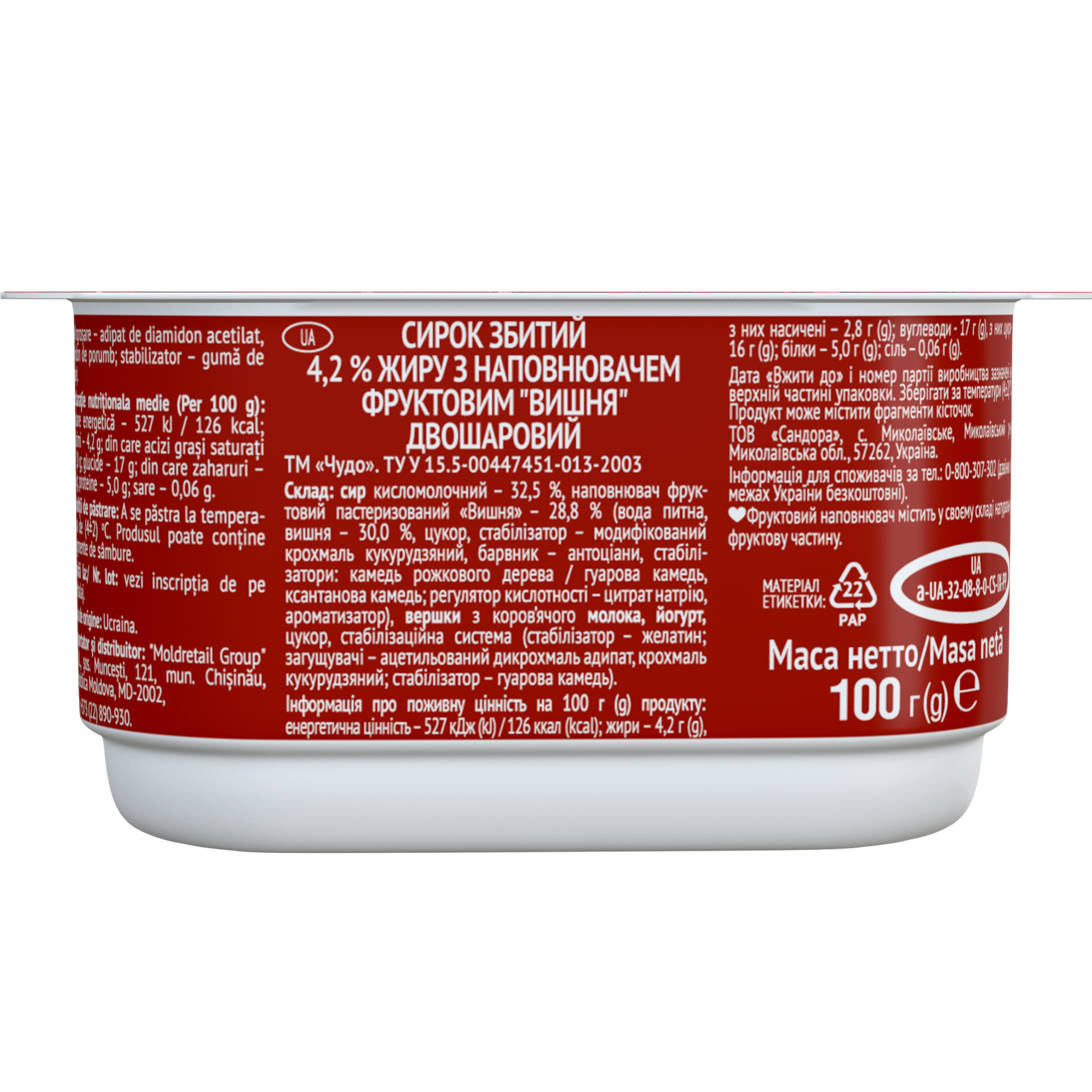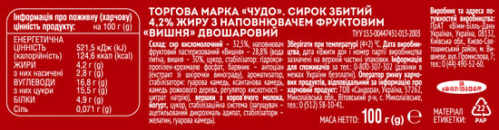 Чудо СирокЗбит 4.2% Вишня 0.100кг 1-12