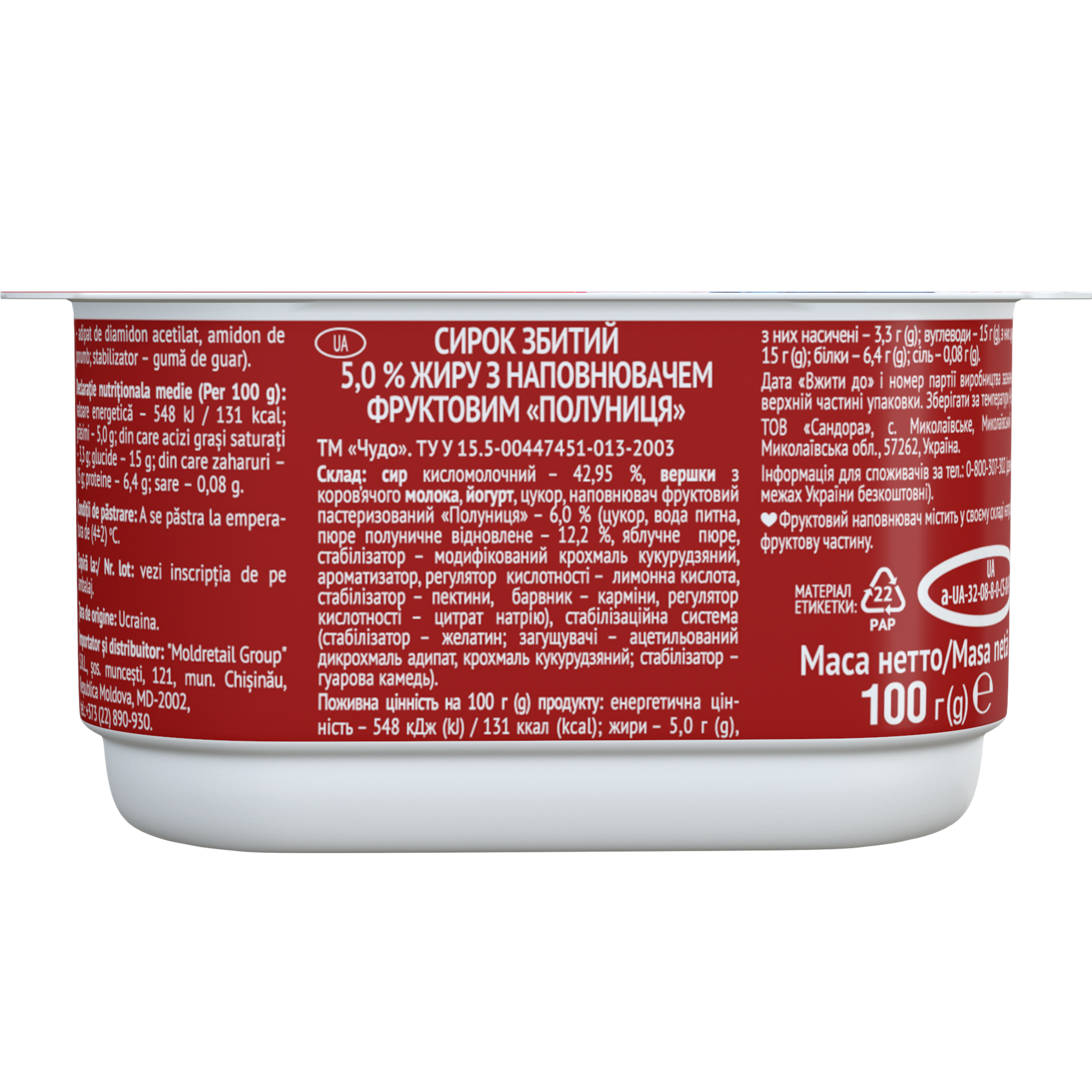 Чудо СирокЗбит 5% Полуниця 0.100кг 1-12