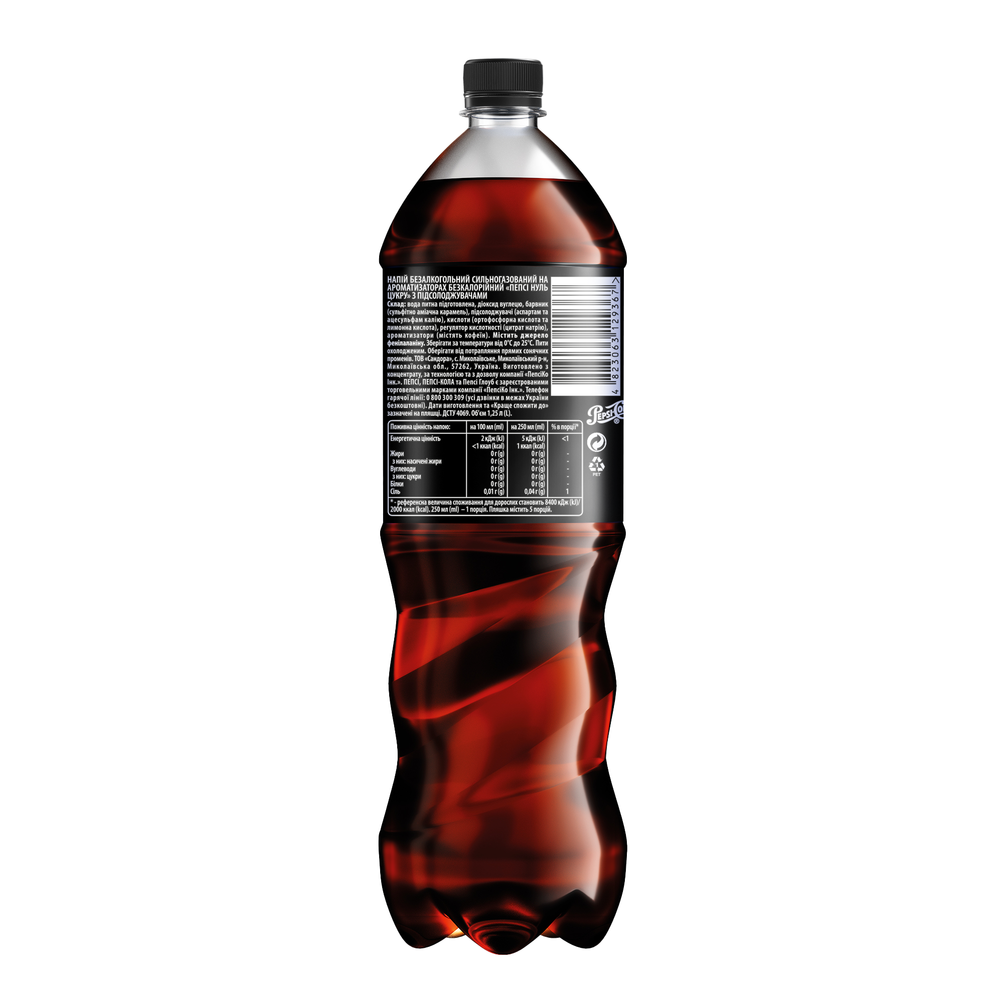 Pepsi Zero Sugar 1.25л ПЕТ 1-6 UA