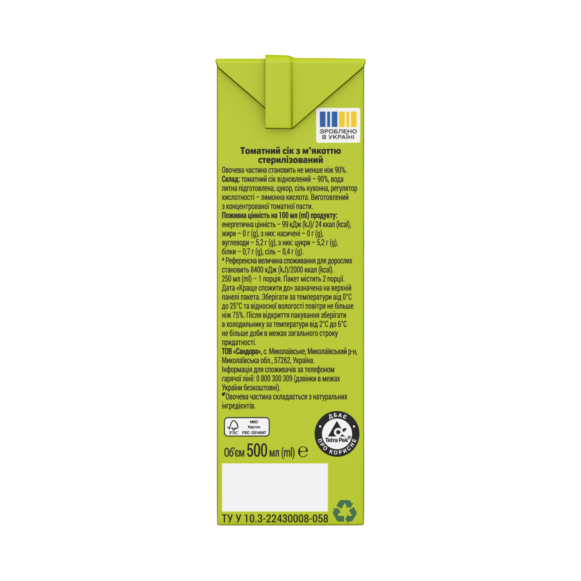 Садочок Сік Томат 0.5л 1-15 UA