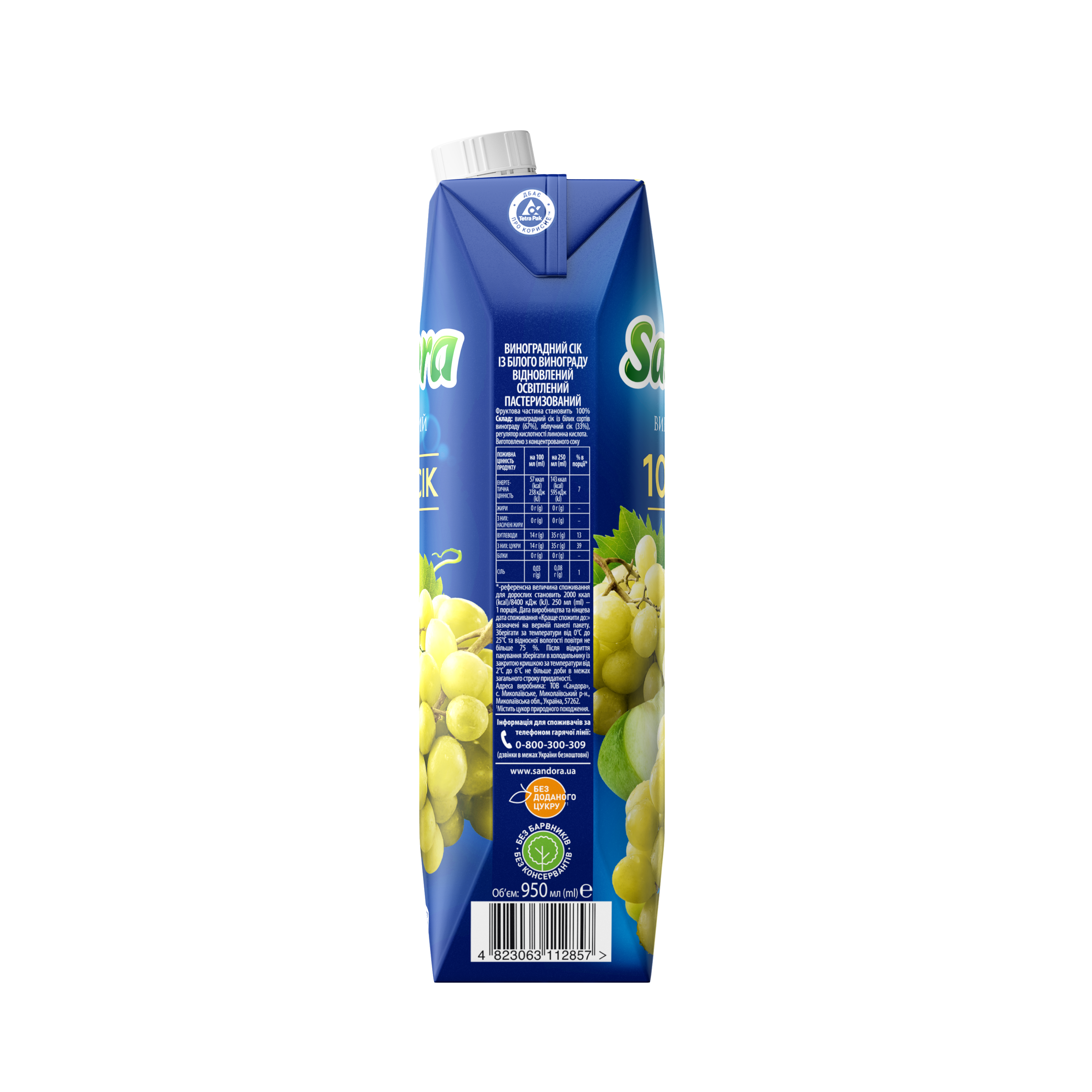 Sandora Сік Виноград білий 0.95л 1-10 UA